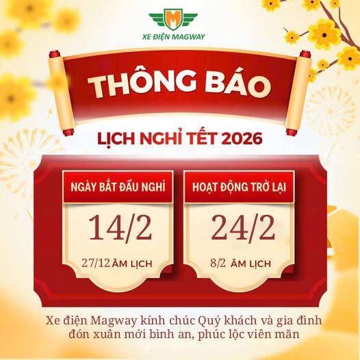 XE ĐIỆN MAGWAY THÔNG BÁO LỊCH NGHỈ TẾT NGUYÊN ĐÁN BÍNH NGỌ 2026